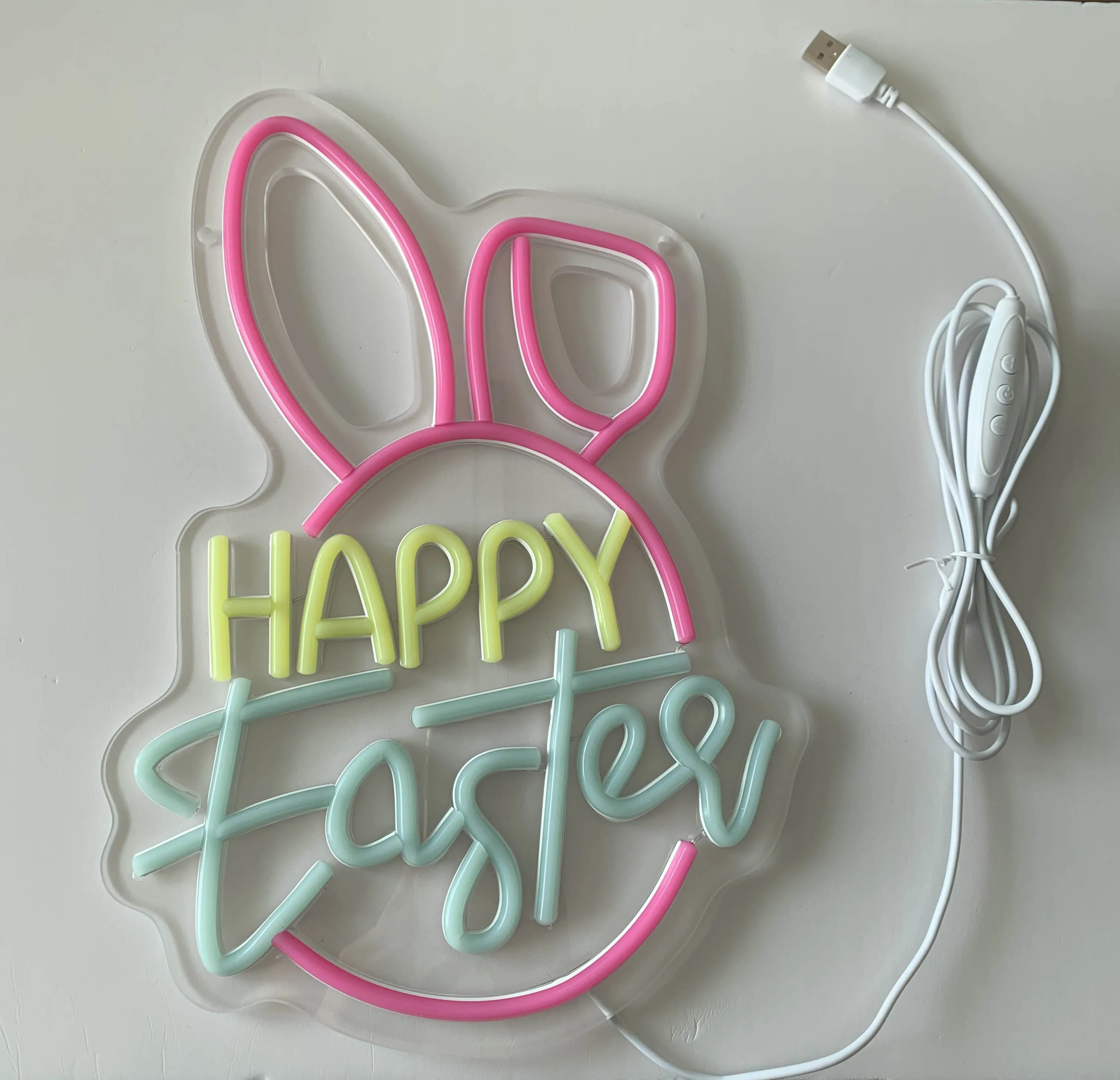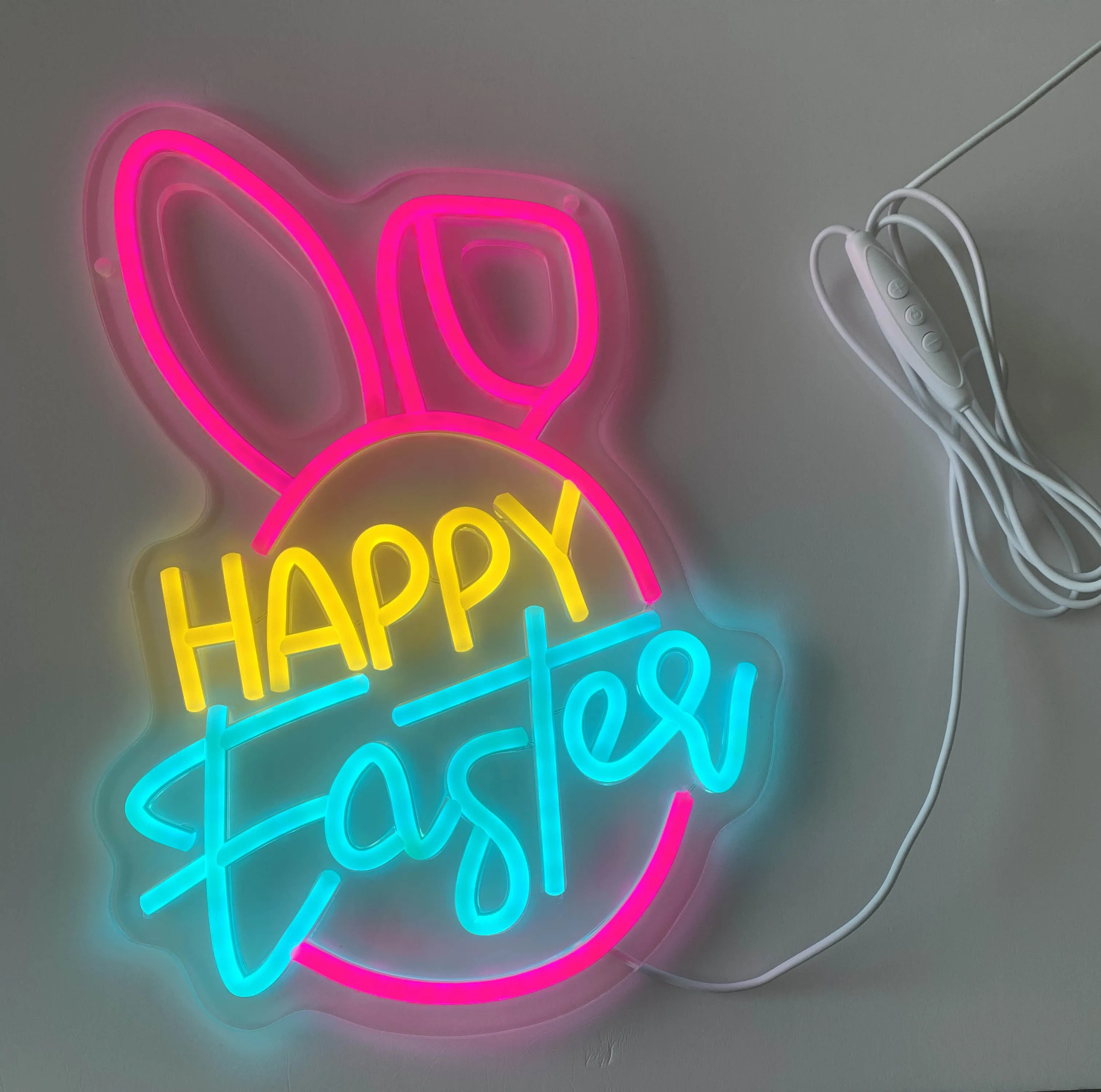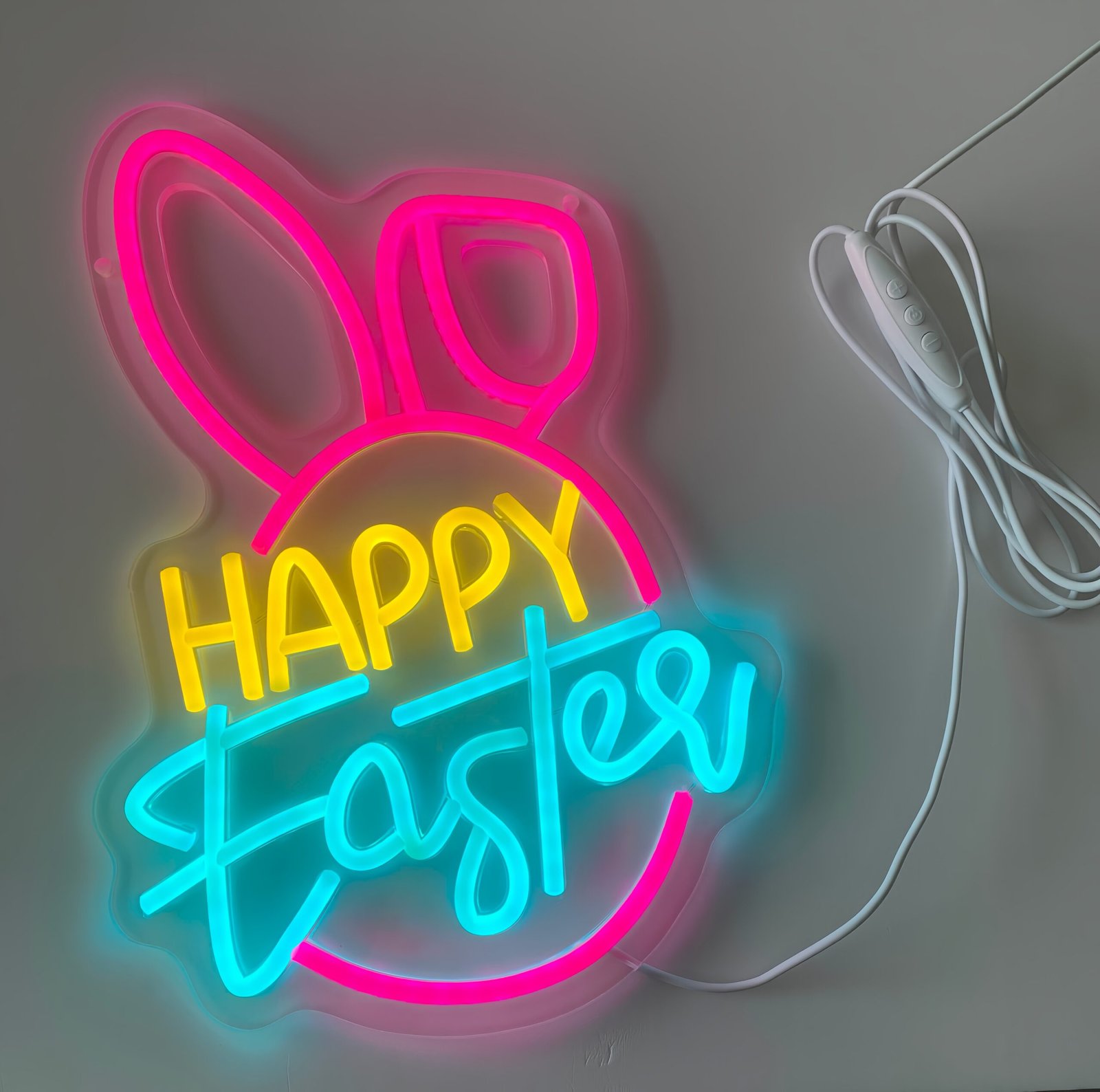 Happy Easter Design: Brightly colored neon sign for festive decoration.