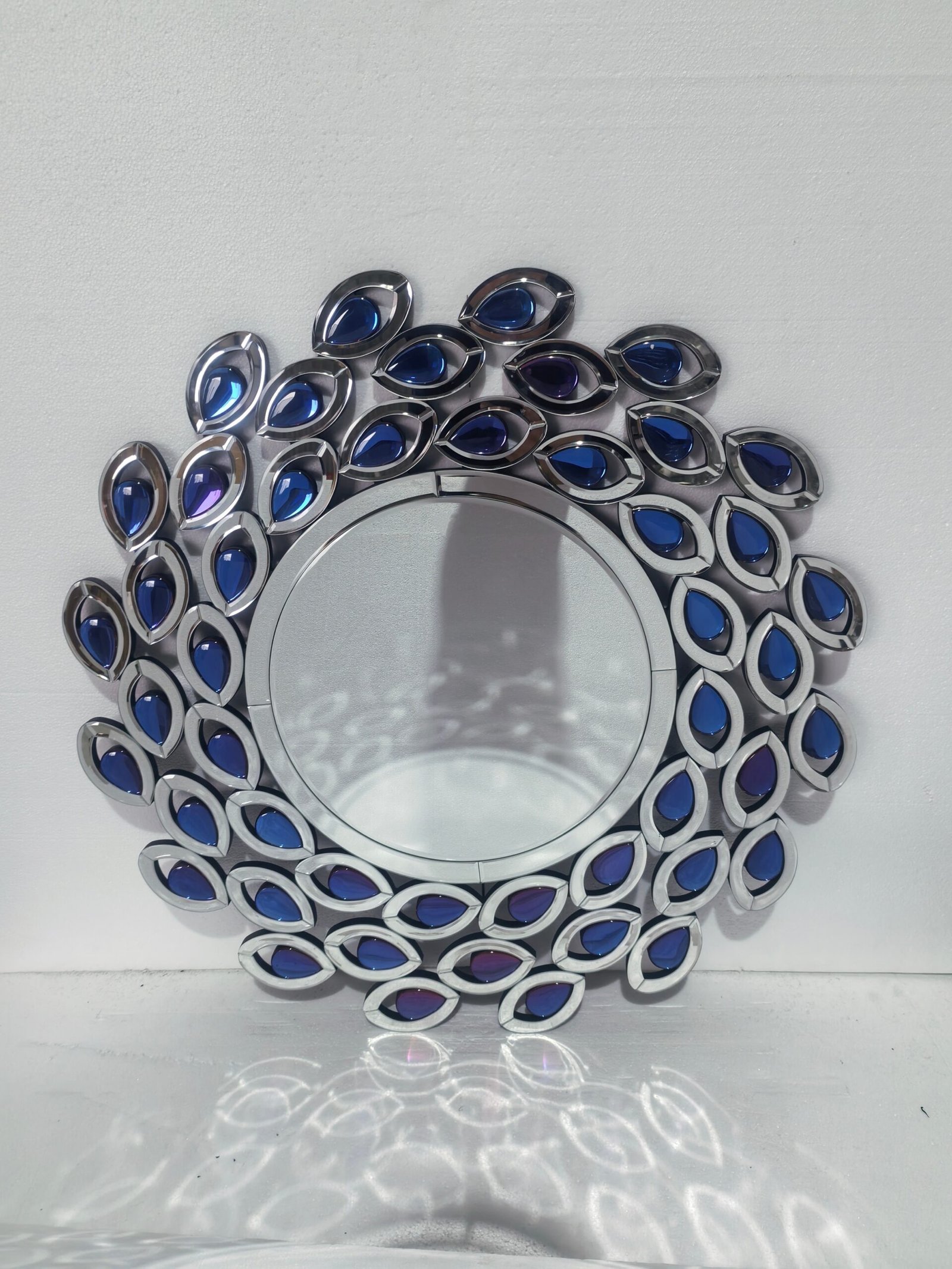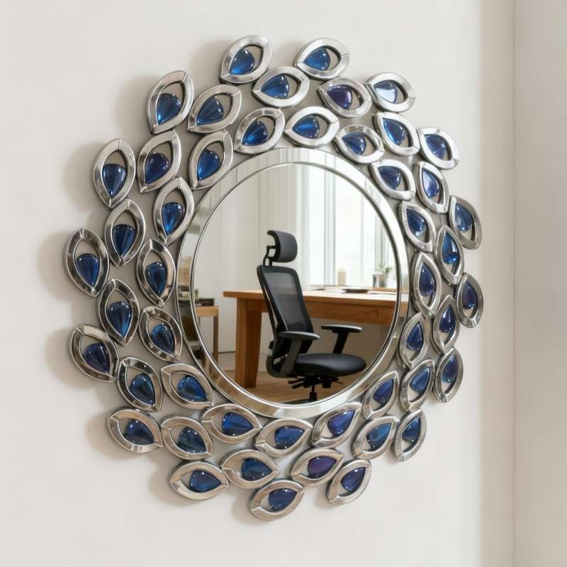 Luxury Living Room & Dining Room Interior Design Eye-Catching Statement Piece Glamorous Blue Artistic Decorative Wall Mirror